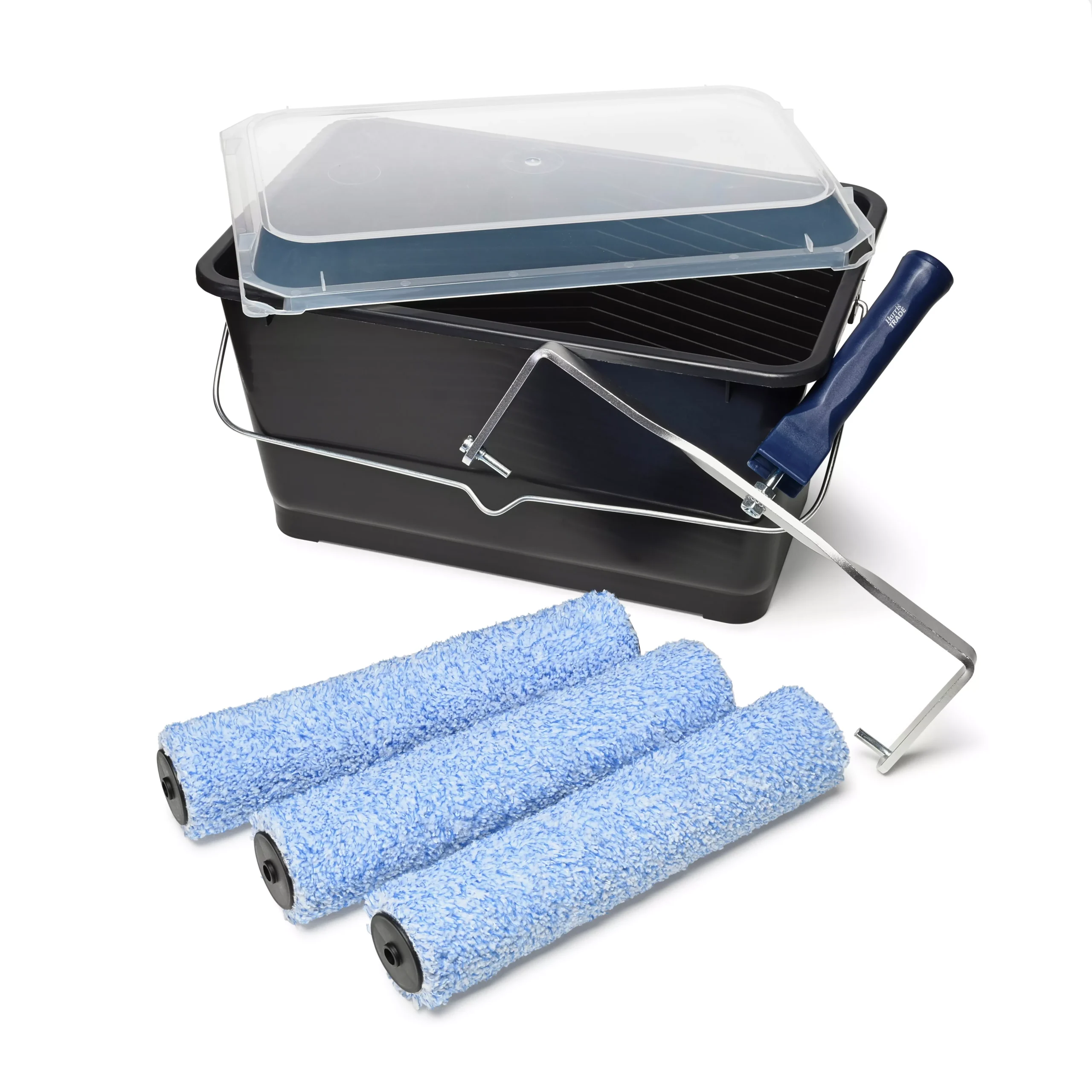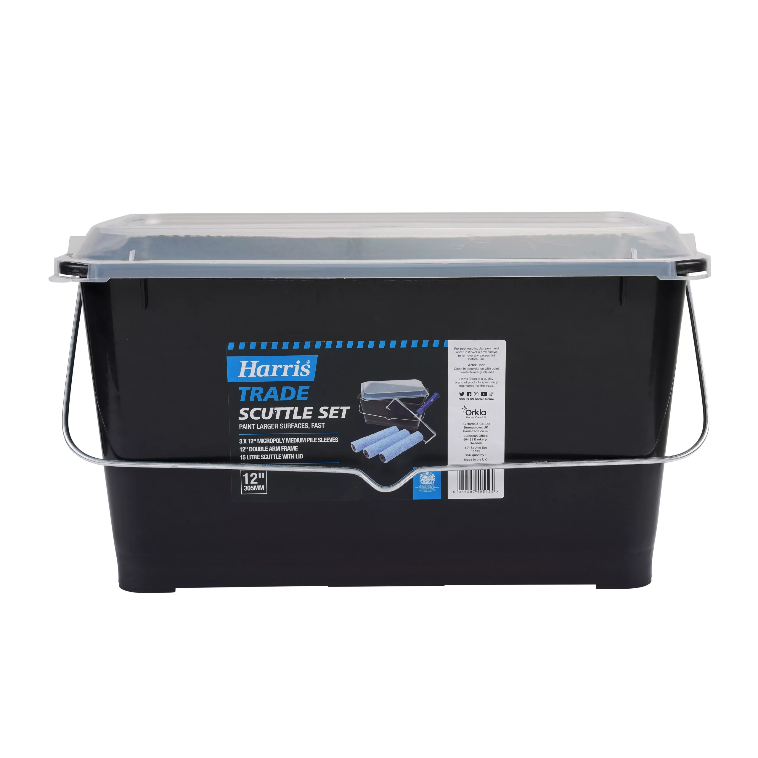 Paint larger surfaces fast with this Harris Trade 12” Scuttle Set. The 12” medium pile roller sleeves give a great finish on larger smooth and semi-smooth surfaces such as woodchip, previously painted or lightly textured walls and ceilings. These durable sleeves can be used with interior paints, enhanced the micropoly mix fabric gives optimal paint absorption for fast, even coverage with minimal spatter. As with all new sleeves, dampen the hand first & stroke sleeve to remove any excess, loose lint for the best finish.