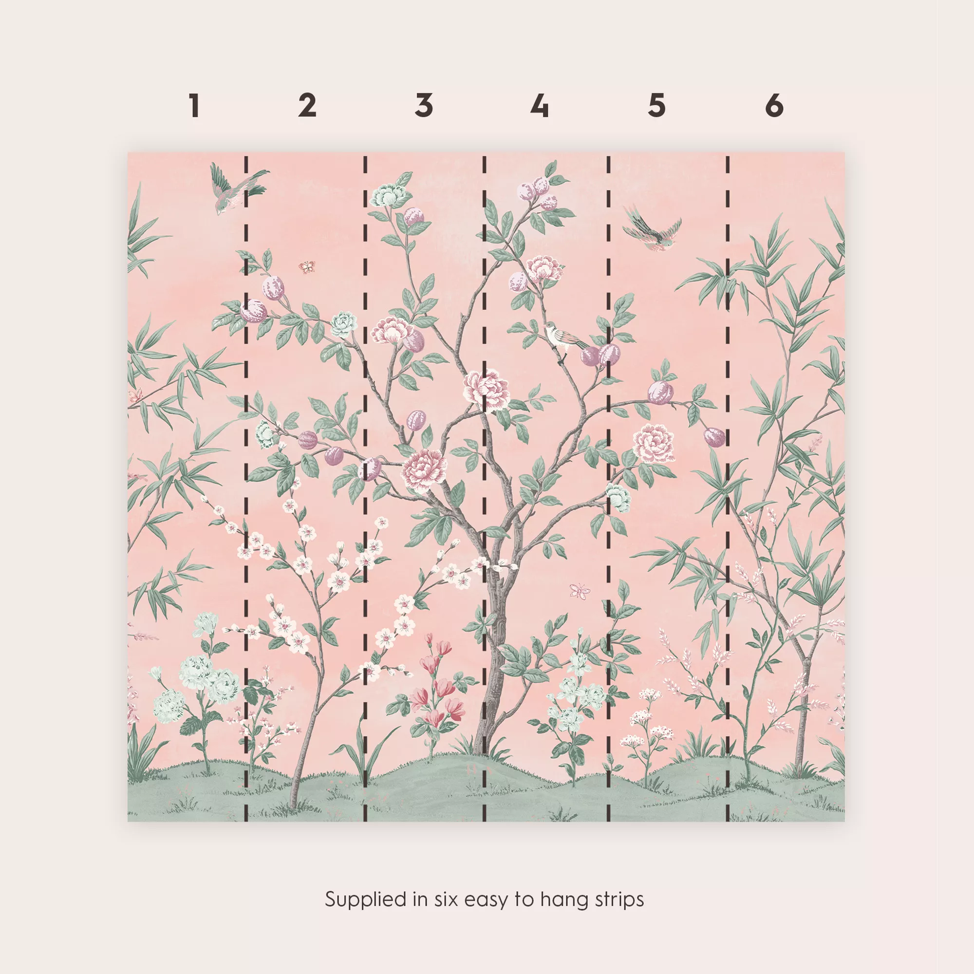 Make a statement on your walls with this beautiful sweetbrier trail design, set against soft romantic blush tones, it is sure to impress. Laura Ashley murals come on one roll with 6 referenced panels.